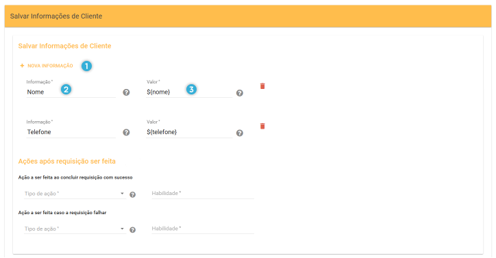 Aqui você define o que acontece após o salvamento das informações, tanto em caso de sucesso quanto de falha.