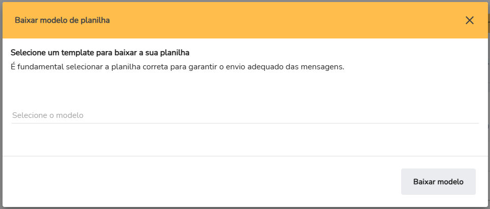 Para cada novo modelo de mensagem que você deseja utilizar nas campanhas, a plataforma disponibiliza uma planilha específica, já no padrão correto para download.