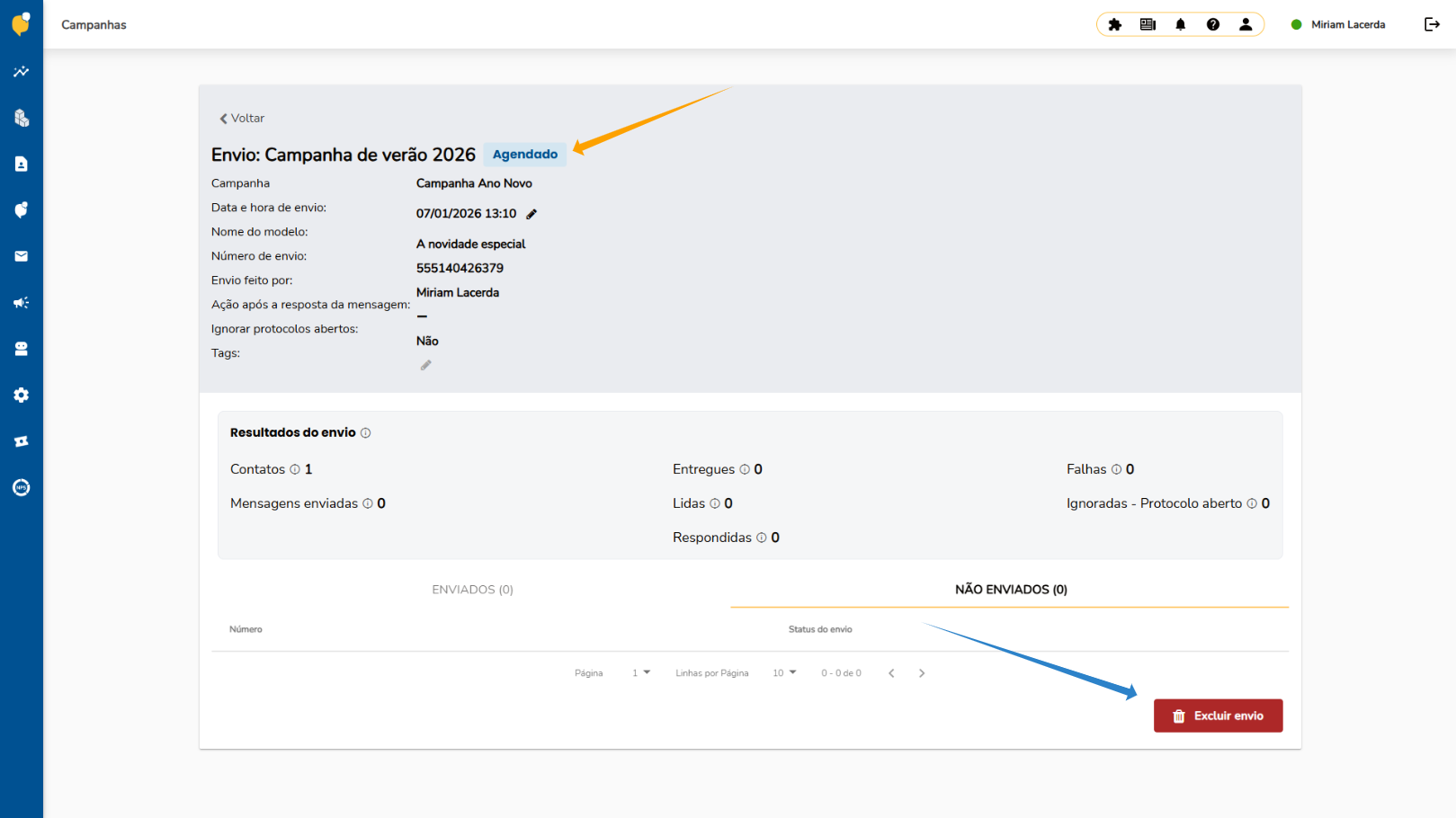 Saber como excluir um envio agendado é essencial para evitar mensagens indevidas e garantir mais segurança no gerenciamento das campanhas.
