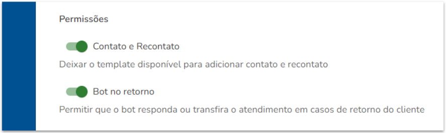 Essa permissão define se, após um envio de template em lote, o bot terá autorização para interagir quando o cliente responder.
