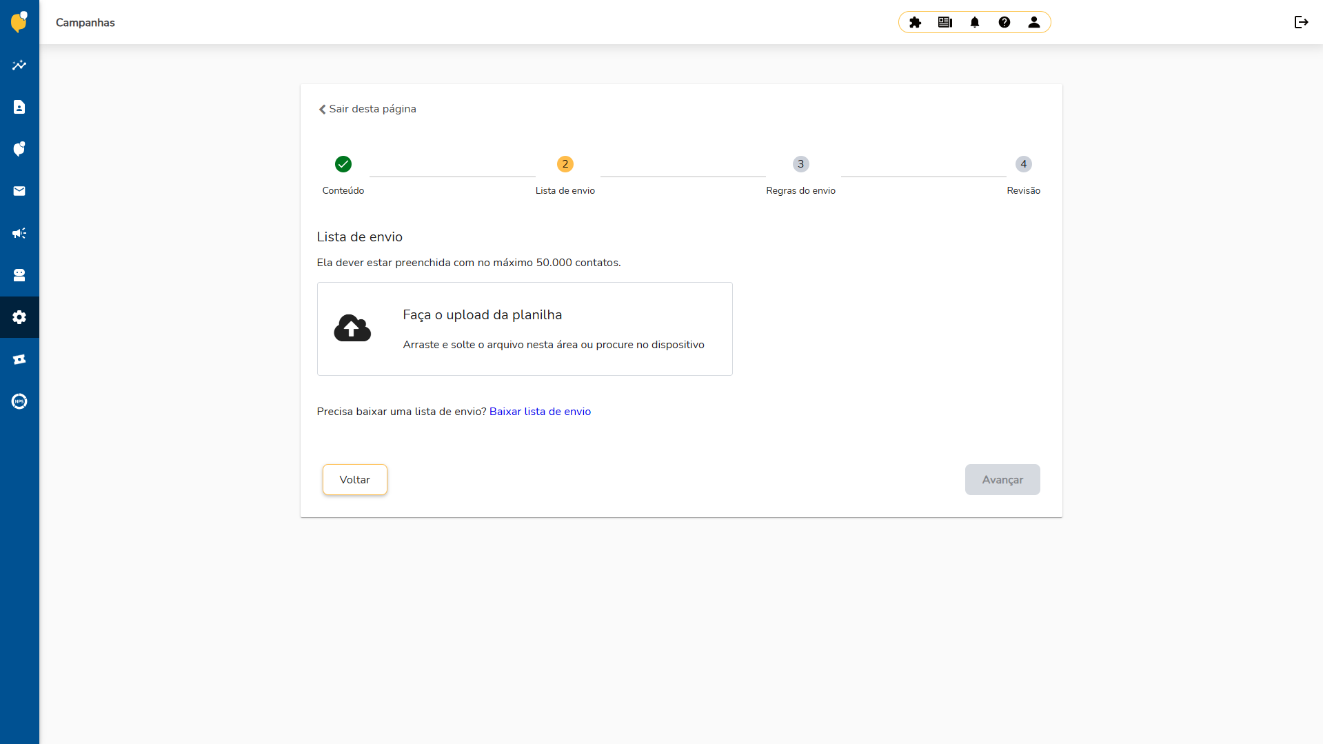 Sempre que possível, utilize o modelo atualizado e revise os alertas exibidos pelo sistema — isso evita bloqueios e garante que sua campanha chegue ao destino certo.