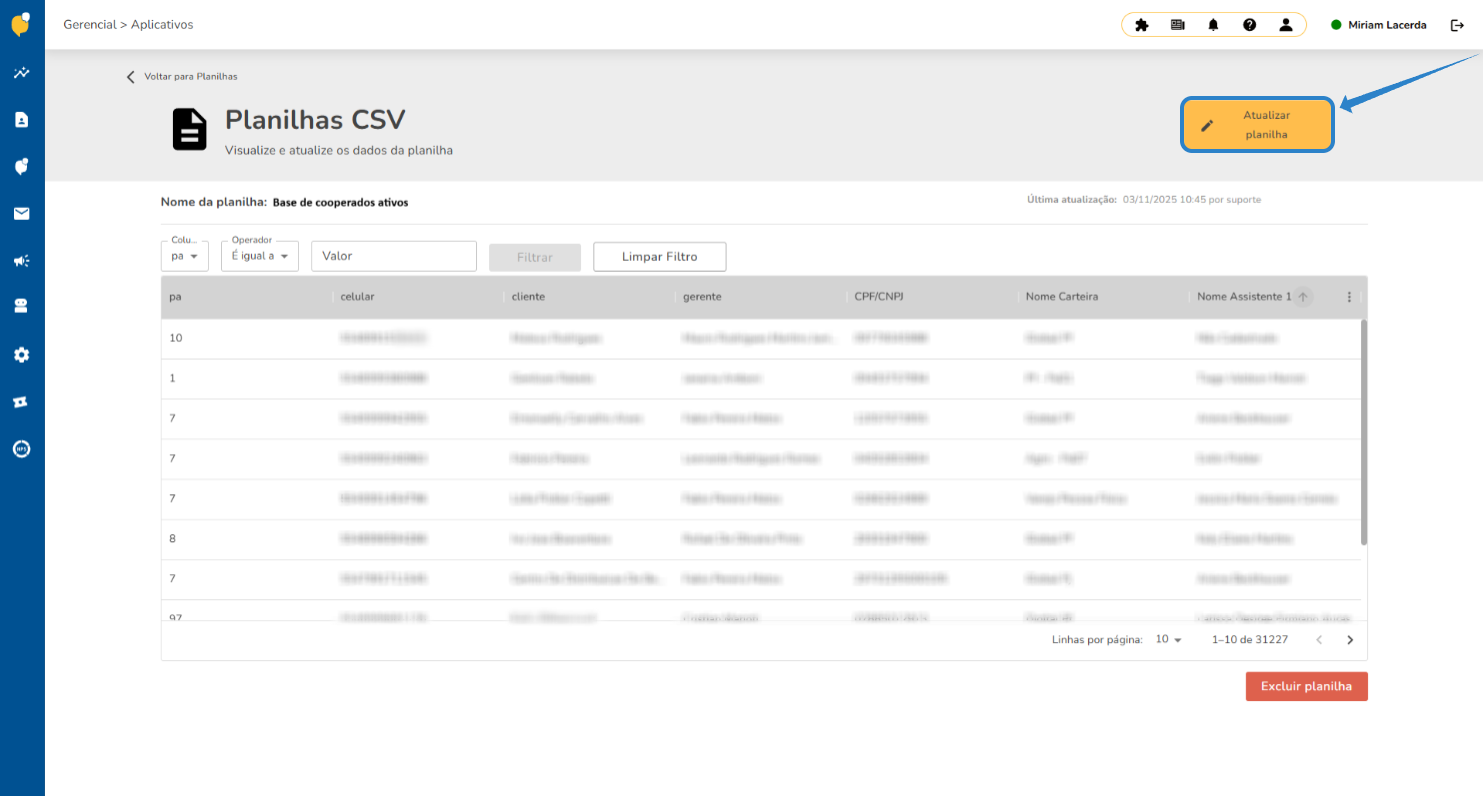 Quando houver necessidade de renovar as informações utilizadas nas conversas, o processo de atualização da planilha oferece total autonomia para gerenciar o conteúdo que alimenta a inteligência do seu atendimento.